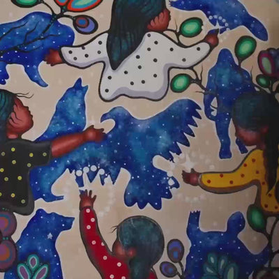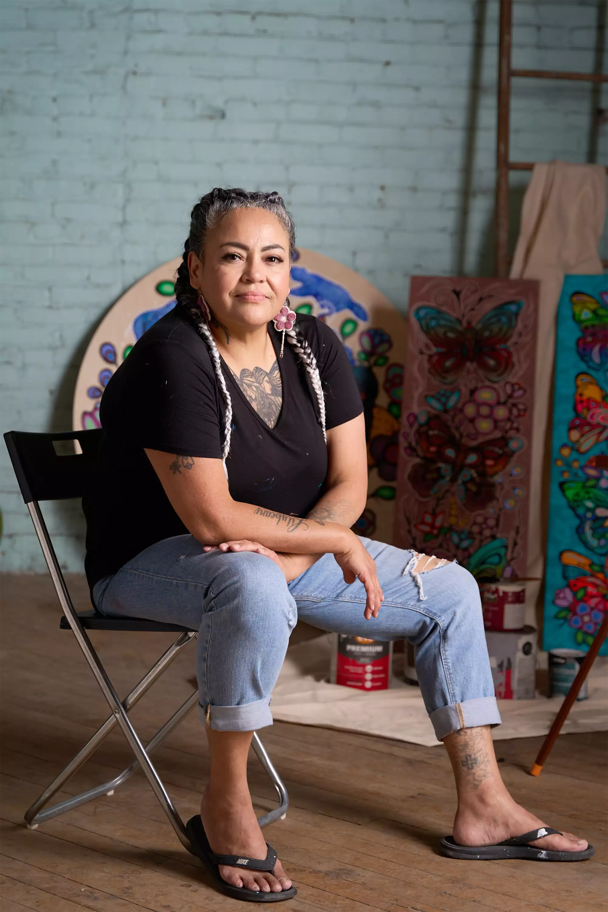 Jackie, an Ojibway multimedia artist from Winnipeg, Manitoba, and a proud member of the Lake St. Martin First Nation, brings a powerful voice to her art. A survivor of the Sixties Scoop, Jackie’s work delves into Indigenous themes, highlighting the experiences and resilience of Indigenous women while addressing the impacts of historical injustices. Her art is a testament to both personal and communal strength.