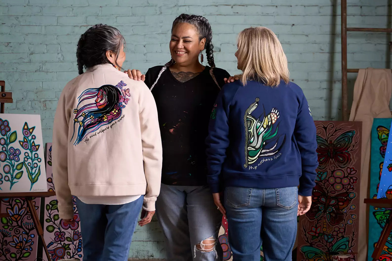 A portion of the proceeds from the MPG x Jackie Traverse Collection will benefit Ikwe Widdjiitiwin — Indigenous Crisis Shelter for survivors & victims of gender-based violence in Winnipeg. By supporting this essential organization, we honour Jackie’s advocacy through her art and stay true to our B Corp™ values of making a meaningful impact.